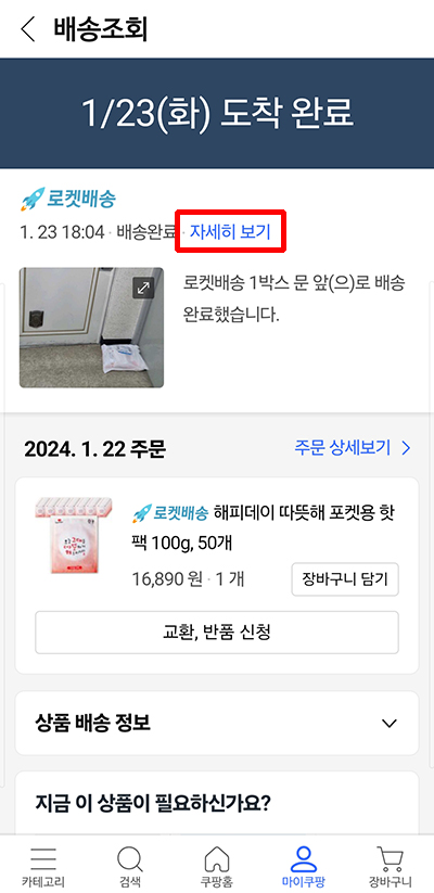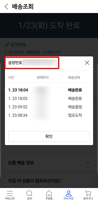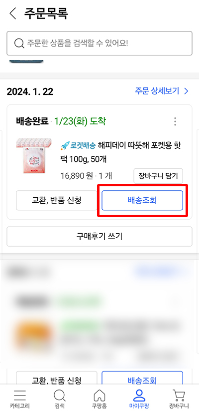 쿠팡 로켓배송 배송조회 및 현위치 확인