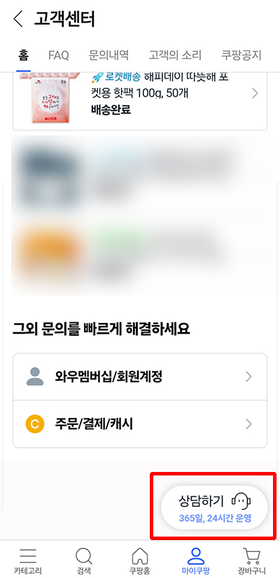 쿠팡 로켓배송 배송 중 문의사항 및 고객센터 연결